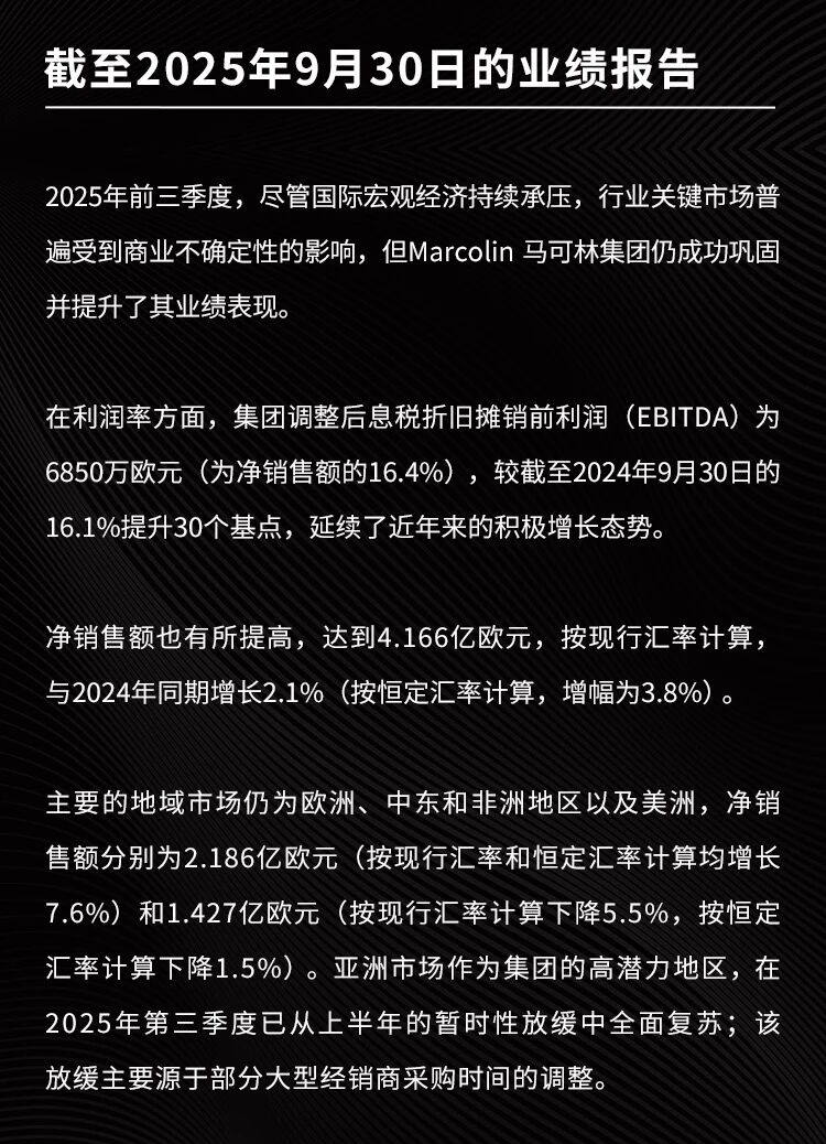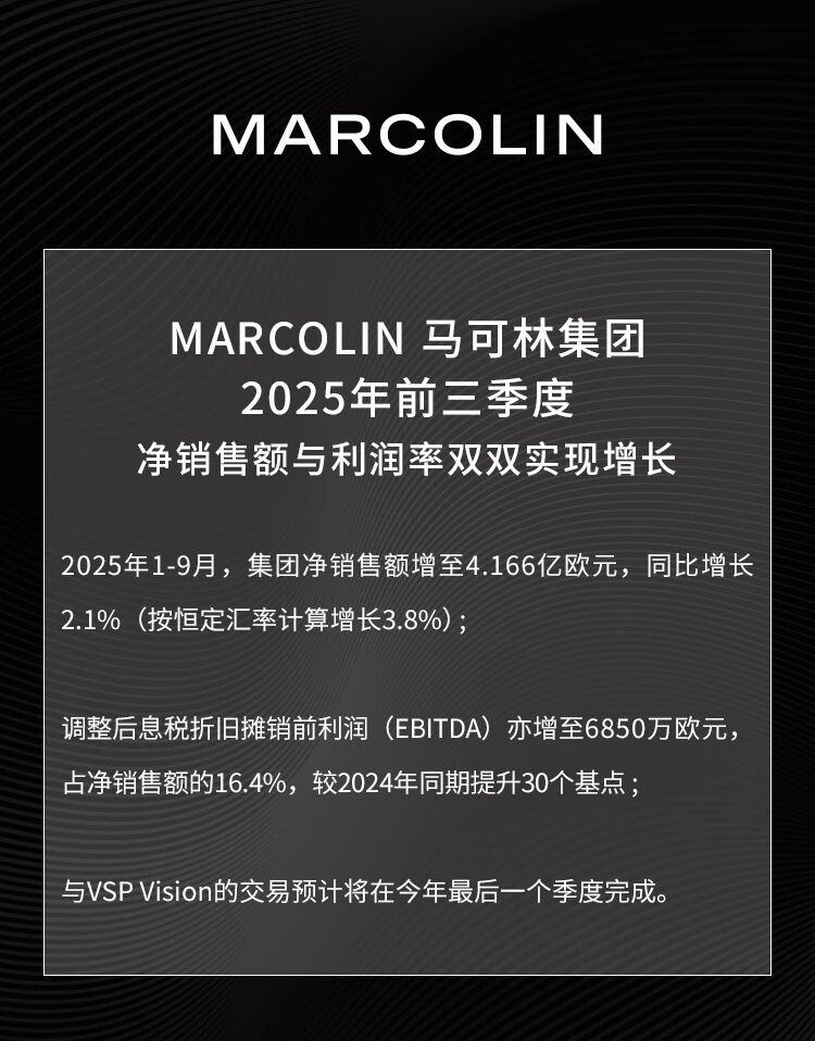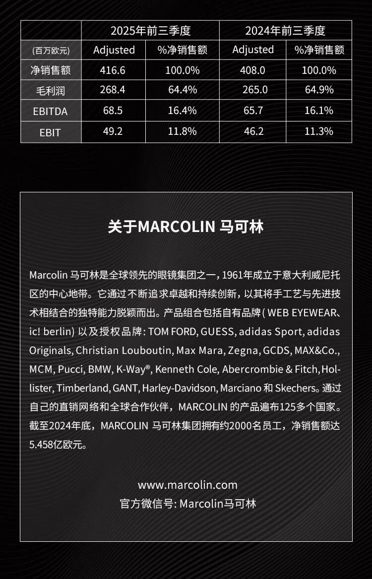 MARCOLIN 马可林:2025年前三季度净销售额与利润率双双实现增长