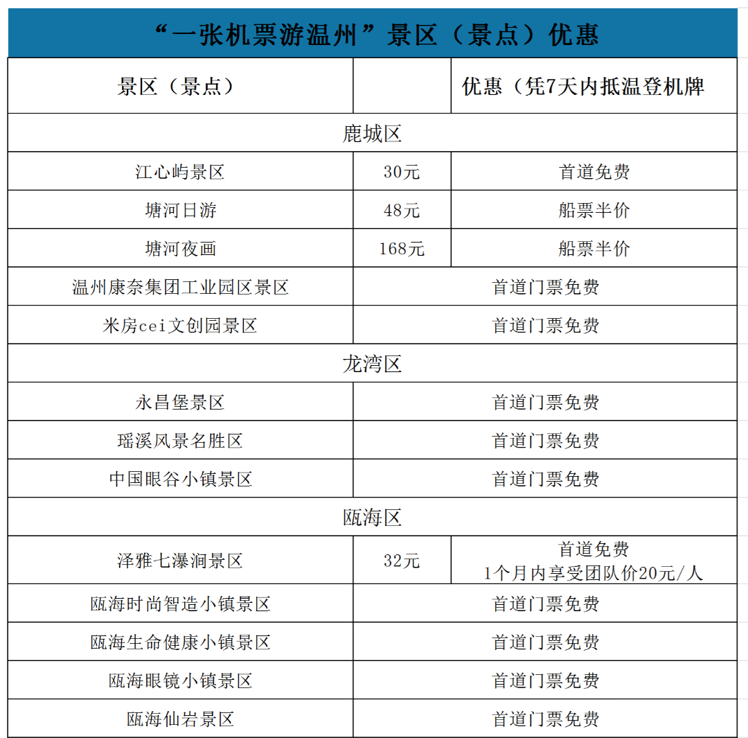 机票拿好!温州文旅福利满满等你来